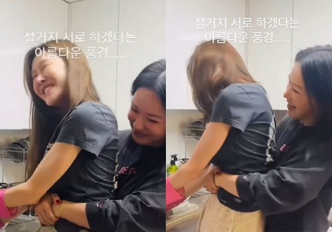 다름 아니라 서로 설거지를 하겠다고 티격태격하다가 결국 몸싸움까지 벌이게 된 상황이었습니다. 누구 하나 당연하게 생각하지 않고 서로를 배려하는 두 사람의 모습이 참 훈훈하지 않나요?