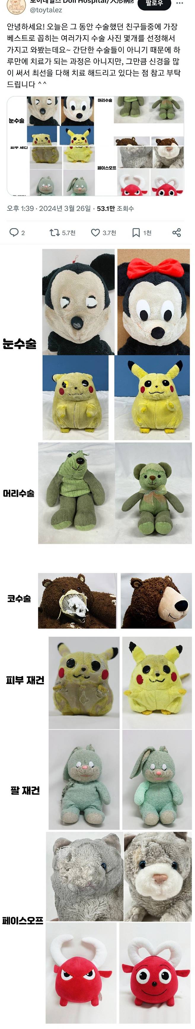 어느 인형 의사의 인형 수술 전 후 사진
