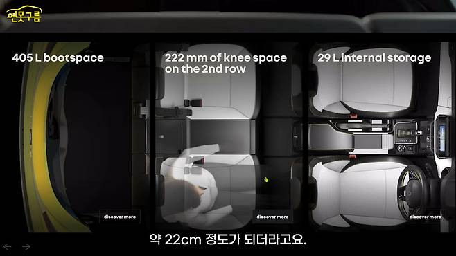 2열 공간은 4m가 좀 안 되는 차량이라서 아주 여유로운 공간은 아니지만, 가끔씩 이용했을 때 크게 불편함이 없는 수준이다. 2열 무릎 앞 공간이 약 22cm 정도 확보되어 있어 성인이 앉아도 충분한 공간을 제공한다.