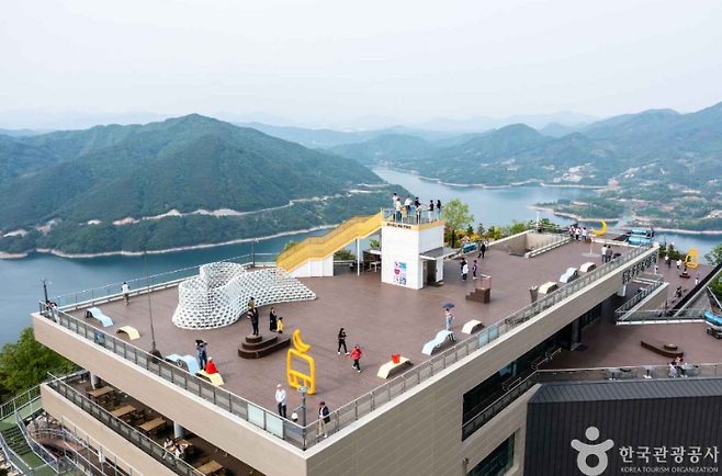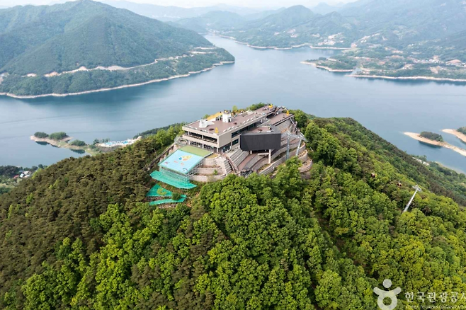 ▶ 정상에서는 호수와 월악산, 소백산 등 명산의 파노라마 뷰 감상 가능