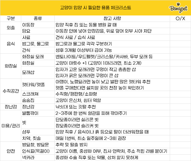 고양이 임시보호 준비물, 입양에 필요한 용품과 비슷해