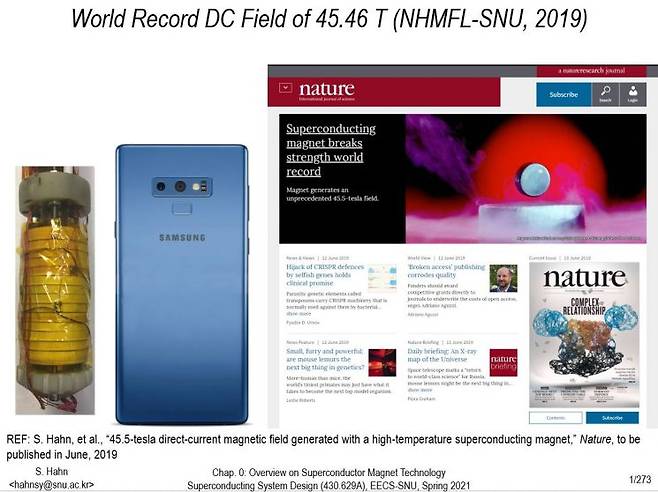 2021년 ‘이달의 과학기술인’으로 선정된 한승용 서울대 물리천문학부 교수는 초전도자석을 초소형화시킬 수 있는 기술을 개발했다. 발전기 등에 사용되는 초전도자석이 높은 용량에서 타버리는 현상을 개선하기 위해 절연체를 없앤 ‘무절연 고온초전도 자석’을 만들었다. 기존 초전도자석의 크기를 100분의 1로 줄일 수 있는 신기술이었다. 현재 정부는 이같은 기술을 고도화ㆍ상용화시키기 위해 지난해부터 5년간 464억원을 들여 고온초전도자석 연구 개발 사업을 진행 중이다. 한 교수는 "전자들이 충돌해 열을 내기 전에 비어 있는 옆길로 넘어가게 하는 개념이 무절연 기술"이라며 "현재 국제핵융합발전소(ITER) 건설에 사용되는 초전도 자석이 20m가 넘는데, 이를 3~4m 내로 줄일 수 있다. 바이오, 메디컬, 국방, 도심형모빌리티 등 굉장히 많은 분야에서 응용할 수 있을 것"이라고 밝혔다.