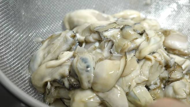 먼저 굵은 소금을 넣은 물에 굴을 넣어 가볍게 씻어준다. 이때 굴은 살살 다뤄야 손상되지 않으니 주의해야 한다. 두 번 정도 세척하고 나면, 깨끗하게 헹구어 짠기를 제거해준다. 그 후 대파는 송송 썰고, 청양고추도 채 썬다.