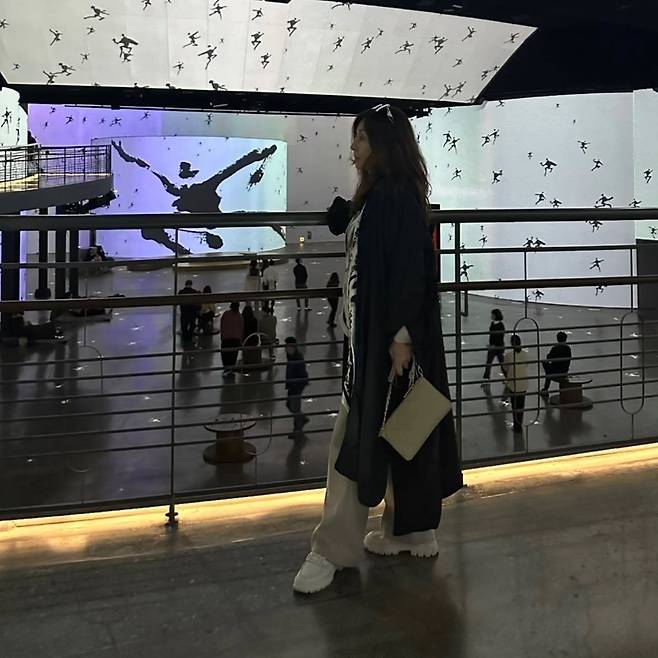 미술관을 방문한 최명길이 모던한 블랙 코트 스타일을 선보였다. 길게 떨어지는 블랙 코트는 심플하면서도 세련된 실루엣을 연출하며, 화이트 와이드 팬츠와의 대비로 시크한 분위기를 자아내고 있다. 화이트 신발과 베이지 컬러 클러치백으로 포인트를 주어 전체적인 균형을 맞추었다. 특히 미디엄 웨이브 헤어스타일은 부드러운 분위기를 더하며, 예술 작품이 전시된 공간에서 최명길 자신도 하나의 작품처럼 조화롭게 어우러지고 있다.