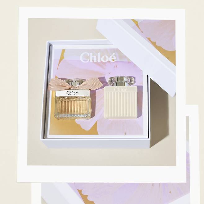 끌로에의 시그너처 향수와 바디 로션으로 채워진 끌로에 시그니처 EDP 세트. 파우더리한 로즈가 살에 닿는 순간 은은하게 퍼지며 호불호 없는 부드러운 향을 느낄 수 있다. 촉촉한 바디로션을 바른 뒤 퍼퓸을 사용하면 더 오래 기분 좋은 향을 즐길 수 있을 것. 귀여운 미니어처 향수가 함께 구성된 세트도 준비했다. 가격 19만원~24만원