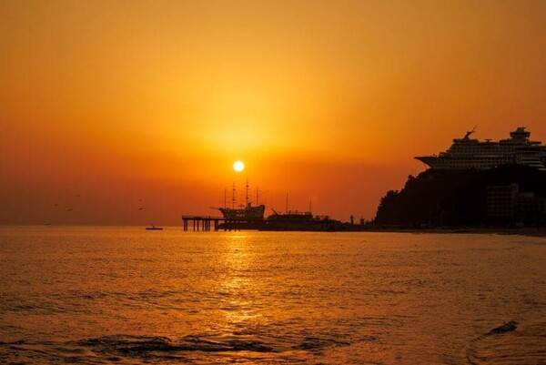 해변 남쪽으로는 언덕 위에 걸린 커다란 배 모양의 썬크루즈리조트가 눈길을 끌어요. 방파제 끝에는 카페로 사용되는 배가 있어 이곳을 기준으로 일출 사진을 찍으면 환상적인 모습을 담으실 수 있어요. 방파제 한쪽에는 새로운 해상 시설이 건설 중이어서 앞으로 바다 스카이워크 같은 새로운 볼거리가 추가될 예정이에요.