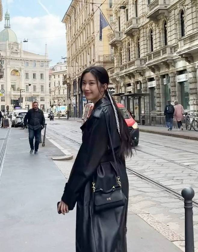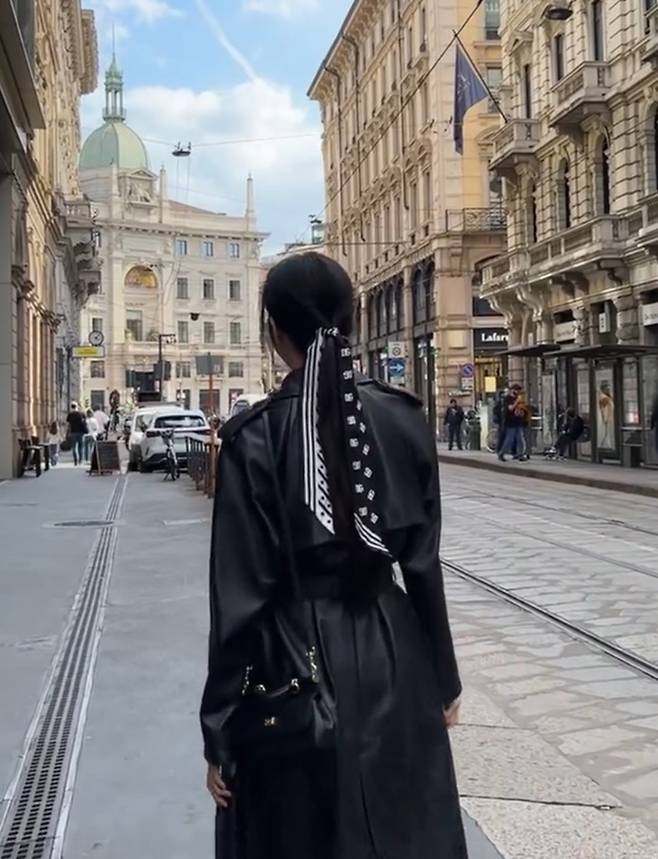 배우 문가영이 이태리 밀라노에서 예쁜 스카프 댕기머리에 가죽 코트 여행룩으로 시선을 사로잡았다.