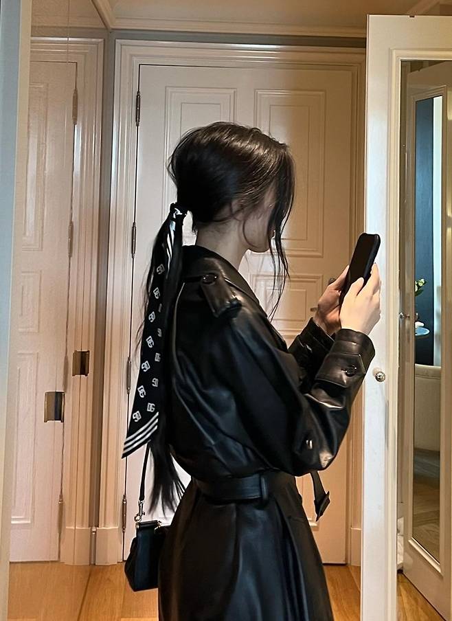 공개한 사진에서 문가영은 포니테일 헤어 스타일에 스카프 댕기를 묶고 블랙 가죽 코트룩으로 멋스러우면서도 예쁜 여행 스타일을 완성했다.