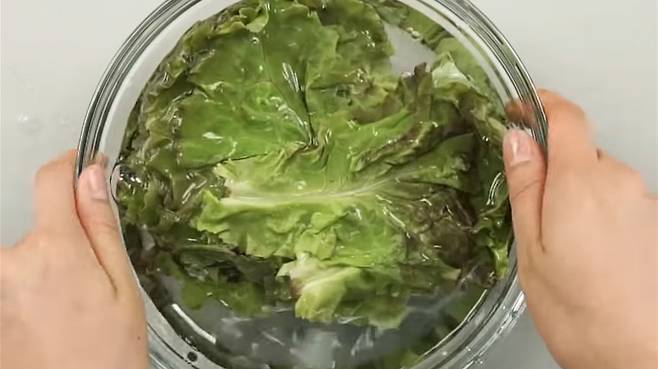 첫 번째 단계는 찬물에 상추를 약 3분 정도 담가 두는 것입니다. 이 과정은 잎 표면에 붙은 흙먼지, 작은 벌레, 꽃가루 등을 자연스럽게 떨어뜨리는 데 매우 효과적입니다. 이때 상추를 손으로 너무 세게 문지르지 말고 잎이 상하지 않도록 뒤집어주며 물이 골고루 스며들게 하면 세척 효과가 더욱 좋아집니다. 담가두는 과정은 단순한 헹굼보다 오염 제거율이 훨씬 높습니다.