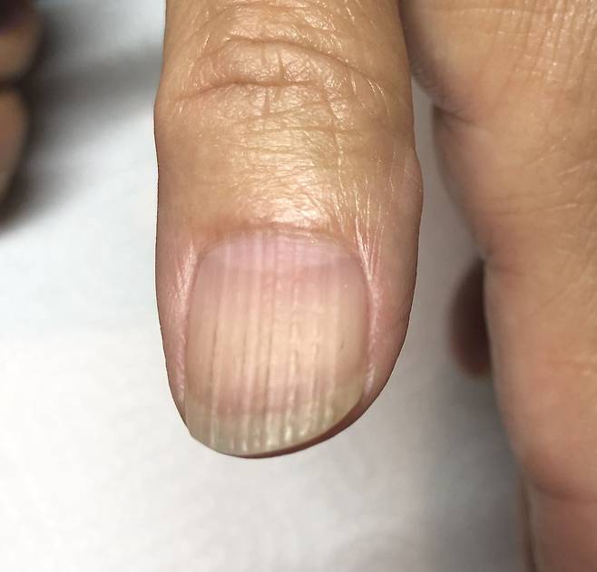 혈액순환 장애가 있을 경우 손톱에 영양과 산소 공급이 줄면서 세로줄이 뚜렷해진다.