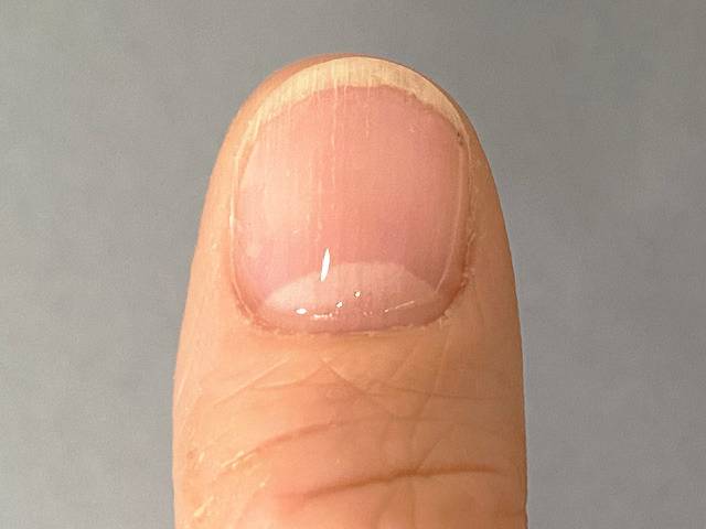 손톱 표면의 울퉁불퉁함, 두꺼워짐, 갈라짐과 함께 나타나면 전문의 진단이 필요하다.