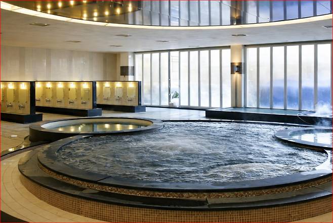 수치료와 마사지로 일깨우는 신체의 활력 2006년 국내 최초로 도입된 독일식 바데풀은 직경 30m, 수심 1.2m라는 세계적인 규모를 자랑합니다. 단순한 온탕 이용을 넘어 물속에서 보행하거나 수영을 하며 운동할 수 있도록 설계되었으며, 내부에 장치된 워터 제트 분사는 신체 각 부위를 자극해 안마 효과를 선사합니다. 10여 종의 수치료 시설과 유수풀, 유아풀, 사우나가 마련된 실내 바데풀은 남녀노소 모두에게 건강 증진의 낙원이 되어줍니다.