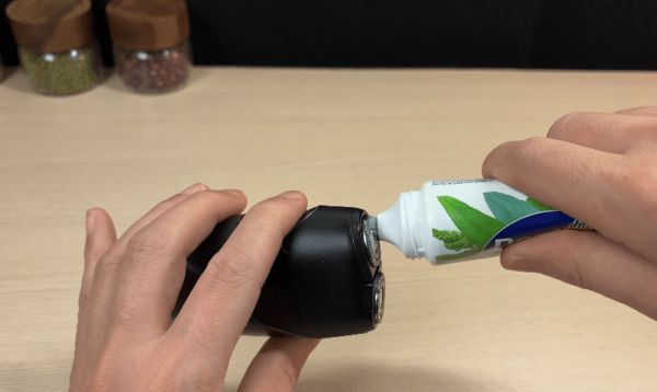 이 조합 덕분에 면도기를 닦을 때 치약을 소량만 사용해도