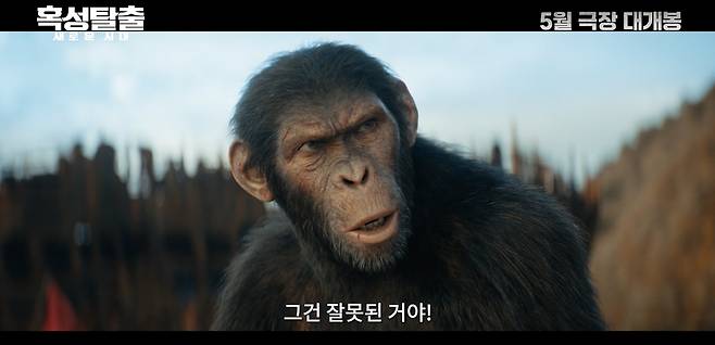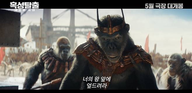 도합 16억 8,100만 달러의 흥행 수익을 기록하며 웰메이드 블록버스터로 세계적인 사랑을 받은 명작 <혹성탈출> 시리즈의 새로운 이야기를 담은 <혹성탈출: 새로운 시대>가 오는 2024년 5월 개봉 확정과 함께, 강렬함으로 가득찬 슈퍼볼 예고편을 전격 공개했다. 공개된 예고편은 지난해 11월 공개된 티저 예고편 보다 더욱 확장된 세계관과 각 캐릭터들의 박진감 넘치는 서사가 담겨 강렬함을 안긴다.