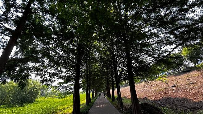 더울때는 시원한 숲길이 최고죠. 메타세콰이어길은 자주 걷는 길이지만 정말 시원합니다. 보통 끝에서 원점회귀했는데 오늘은 팔당대교를 건너 봅니다. 다만 신팔당대교 공사중으로 복잡하고 자전거길과 분리가 안되어 추천하지는 않습니다.