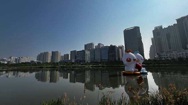 호수공원이라는 이름답게 호수가 반영되어 멋진 모습을 보여줍니다. 한 두 바퀴만 걸어도 운동도 충분할 것 같습니다. 저녁에도 멋지다고 하네요.