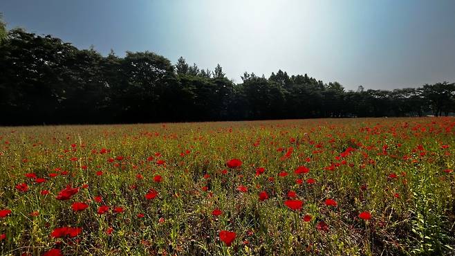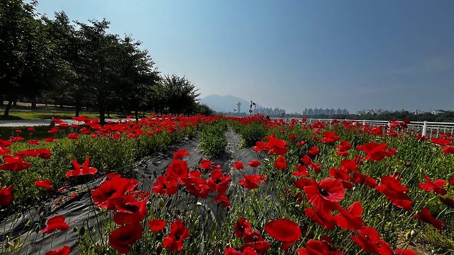 사실 경정공원은 뚝방길로 가기 위한 길로만 생각했는데 이 계절에는 뜻하지 않은 꽃이 가득합니다. 무엇보다 곳곳에 양귀비가 가득합니다. 물론 여기서 볼 수 있는 양귀비는 관상용으로 흔히 말하는 마약성분은 없는 것이니 안심하고 꽃을 즐기시면 됩니다.