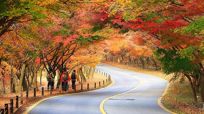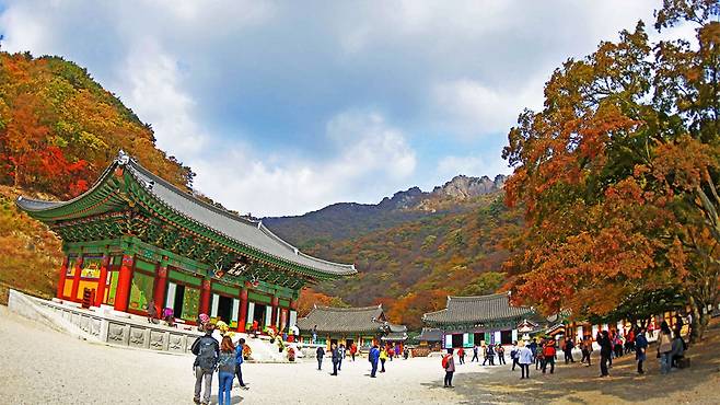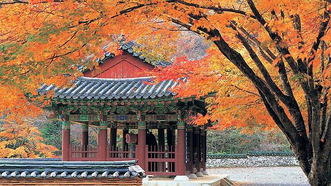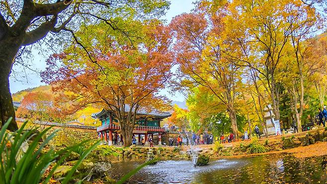 입구부터 이어지는 붉고 노란 단풍길은 그 자체로 한 폭의 동양화