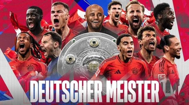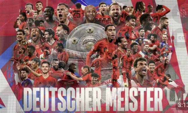 바이에른 뮌헨은 지난 5일 바이엘 레버쿠젠과 SC 프라이부르크의 2024-25시즌 독일 분데스리가 32라운드 경기가 2-2 무승부로 끝나면서 잔여 경기 결과와 관계없이 이번 시즌 분데스리가 우승을 차지했다.