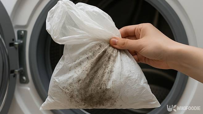 세탁물이 회전하는 동안 비닐이 함께 움직이며 정전기가 발생하고, 이 정전기가 먼지, 머리카락, 작은 보풀 조각을 끌어당긴다. 세탁이 끝난 뒤 비닐을 꺼내 보면 표면에 미세한 먼지가 가볍게 붙어 있는 모습을 확인할 수 있다.