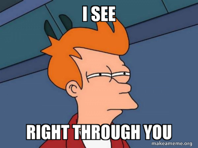 무언가를 꿰뚫어보다 라고 말하고 싶을 때 있잖아요. 그럴 때 딱 알맞는 영어표현이 있어요. 영어도 한국어와 마찬가지로, '꿰뚫어'+'보다'의 조합이 있거든요. 바로 See + Through 입니다. Through 가 ~을 통해서, 통과해서' 라는 의미를 갖고 있기 때문에 이런 표현이 가능해요.