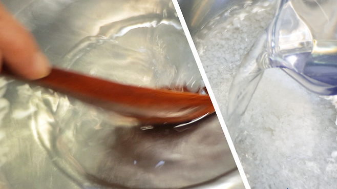 소금 1컵, 물 2L