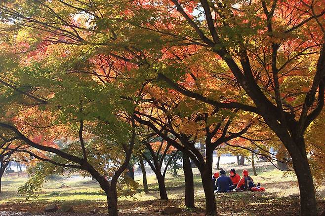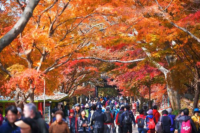 11월은 특히 산 전체가 선명한 붉은빛으로 물들어 이 시기만의 매력을 보여줍니다.