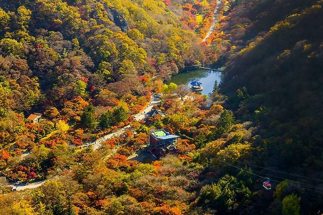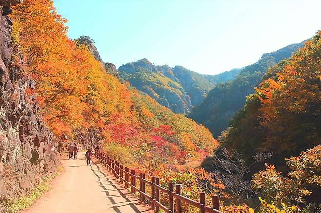 주왕계곡을 따라 펼쳐진 단풍길은 마치 수채화 같은 풍경을 선사합니다.