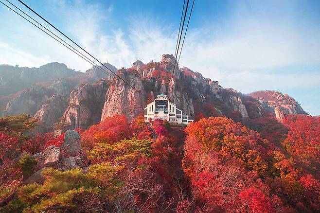 전라북도와 충청남도 경계에 걸친 대둔산은 아름다운 기암괴석과 단풍이 조화를 이룬 풍경으로 ‘호남의 금강산’이라 불립니다.