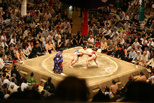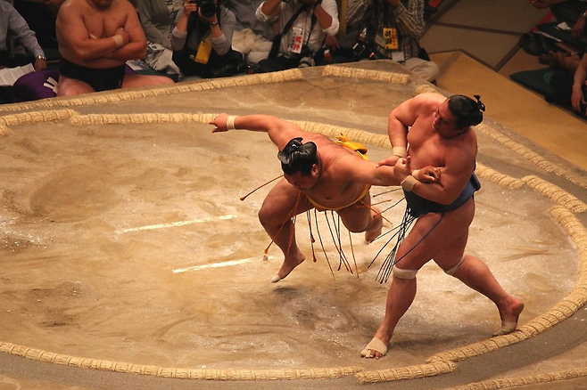 힘과 힘이 맞붙는 스모. 스모는 우리나라의 씨름과 규칙이 비슷하다. 모래로 된 지름 4.55m의 경기장에서 심판의 지도에 따라 두 선수가 맞붙는다. 경합을 통해 경기장 바깥으로 밀려나거나거나 경기장 안에서 발바닥 이외의 신체가 땅에 먼저 닿으면 패배다. 어깨, 손, 무릎 등 발바닥 이외의 신체가 경기장 바닥에 닿았는지를 판정할 때 흙이 묻었는지의 여부는 주요한 기준이 된다. 이러한 점에서 발생한 일본의 관용어가 있다. 일본 사람들은 경기나 대결에서의 패배를 ‘흙이 묻다(土がつく)’라고 표현한다. 야구, 축구 등의 다른 스포츠뿐 아니라 여타 대결에서 패배할 때도 사용한다.