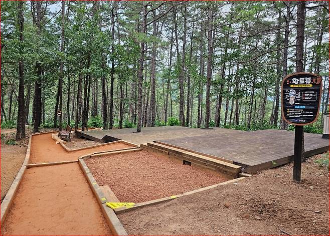 황토는 걷는 이의 발바닥에 자극을 주고,숲속 공기는 몸의 긴장을 풀어주는 이중 효과를 줍니다.숲속 곳곳엔 피톤치드 가득한 명상 쉼터, 치유의 글귀, 음이온 벤치 등