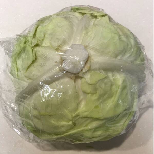 심지 구멍에 키친타올을 넣은 뒤에는 양배추 전체를 랩으로 단단히 감싸주는 작업이 필요하다. 이렇게 밀폐해주면 외부의 건조한 냉기나 수분 증발을 막을 수 있고, 동시에 냉장고 속 다른 음식 냄새가 배는 것도 방지할 수 있다.