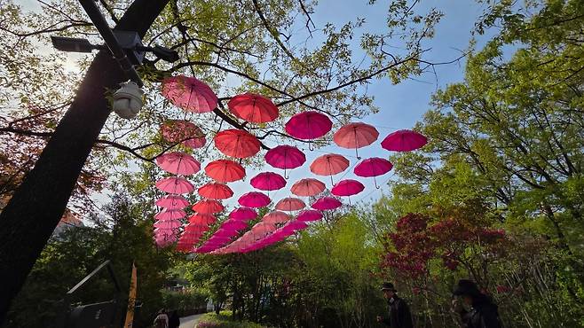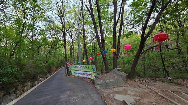 중간쯤 불암산 학도암 부근에는 얼마 남지 않은 부처님 오신날 준비가 한창이네요. 쉬어가기 좋은 쉼터도 곳곳에 있습니다.