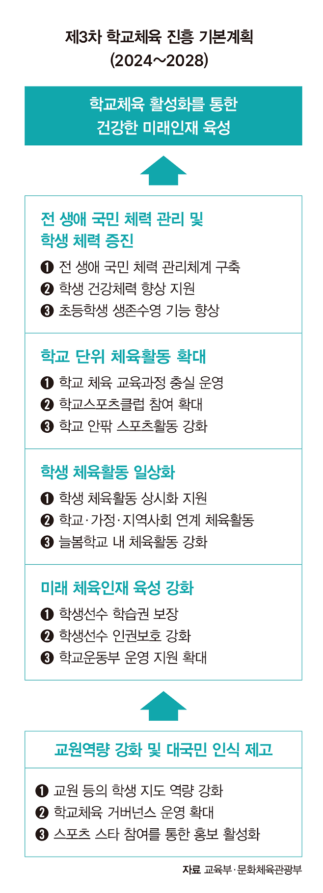 코로나19로 학교스포츠클럽 운영 종목이 줄고 학생들의 만족도도 낮아지고 있는 상황을 반영, 학생들의 체육활동을 강화하는 방안이 본격 추진됩니다. 교육부와 문화체육관광부는 ‘제3차 학교체육 진흥 기본계획(2024~2028)’를 발표했는데요. 이번 기본계획을 통해 ▲국민 체력 관리체계 구축 ▲학생 체력 증진 ▲학교 교육과정에서의 체육활동 확대 ▲학생들의 체육활동 일상화 ▲미래 체육 인재(학생선수) 육성 강화 등을 본격 추진하기로 했습니다. 자세한 내용은 정책주간지 K-공감에서 확인하세요.