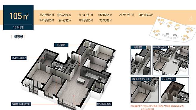 이번에 공급되는 105.46㎡ 물건의 분양가는 8억9508만 원으로 2019년 최초 분양 당시의 가격이 그대로 적용된다. 계약금은 분양가의 20%인 약 1억7901만 원이며 잔금 80%는 약 7억1606만 원으로 책정됐다.