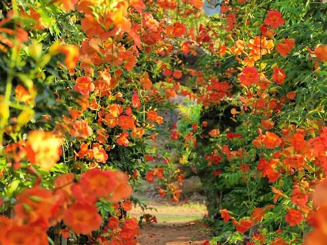 특히, 능소화꽃은 하늘을 능가하는 아름다움으로, 1,000여 미터의 규모로 펼쳐지는 능소화 공원에서 환상적인 꽃비를 맞으며 즐길 수 있다.