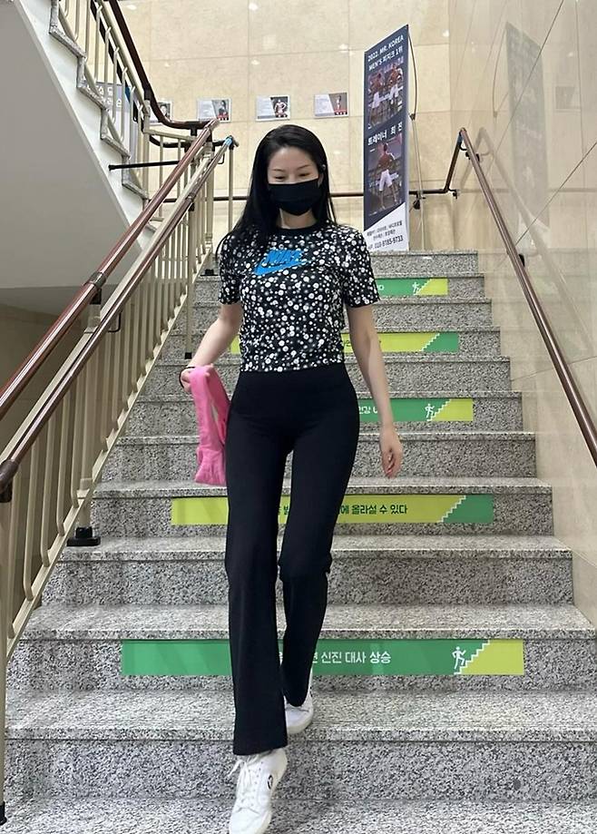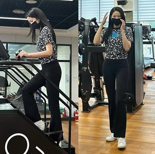 공개한 사진에서 류이서는 타이트한 블랙 팬츠에 꽃무늬 반팔 티셔츠의 애슬레저룩으로 운동으로 다져진 탄탄한 몸매를 드러냈다.