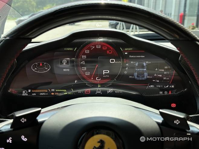 짧고 굵은 트랙 시승을 마치고 인근 도로 주행에 나섰다. 쌍둥이 쿠페형 모델인 296 GTB이 달려줄 차례다. 이번에는 스티어링 휠의 드라이브 모드 버튼을 눌러 전기모드를 넣었다. 296 시리즈는 7.5kWh 배터리를 탑재한 플러그인 하이브리드다. 전기로만 무려 25km를 달릴 수 있다.