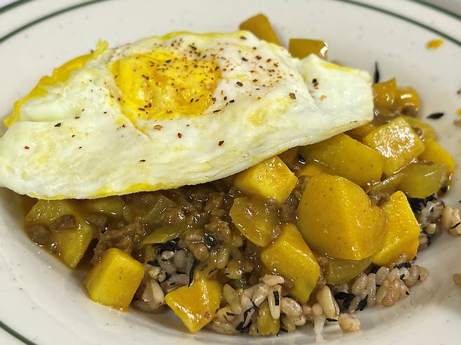 제가 카레에서 꼭 추천하는 야채는 "고구마"입니다. 고구마는 조리 과정에서 전분이 당분으로 변하며 자연스러운 단맛을 내뿜습니다. 카레 특유의 매콤하고 쌉싸름한 강황 맛과 고구마의 달콤함이 어우러지면 다른 양념 없이도 정말 맛있습니다.