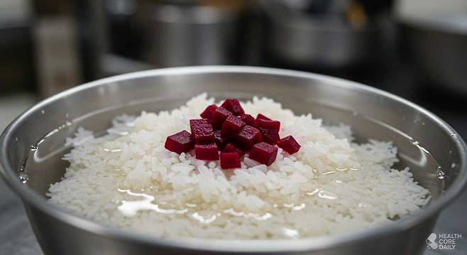 비트는 껍질을 벗기고 잘게 썰어 밥을 지을 때 함께 넣으면 된다. 색이 밥 전체에 퍼지며 붉은빛을 띄지만, 단맛과 고소한 맛이 어우러져 밥맛을 해치지 않는다. 한 끼 식사로도 훌륭하고, 도시락 반찬과도 잘 어울린다.