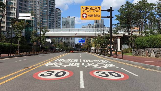 스쿨존 내 제한속도는 법으로 시속 30km 이하로 정해져 있다. 일반 도로보다 훨씬 낮은 기준으로, 이를 위반할 경우 과태료는 일반 구간보다 최대 2배까지 가중 부과된다. 승용차 기준 40km/h로 주행하다 적발되면 7만 원이 아닌 최대 13만 원의 과태료가 부과될 수 있다.