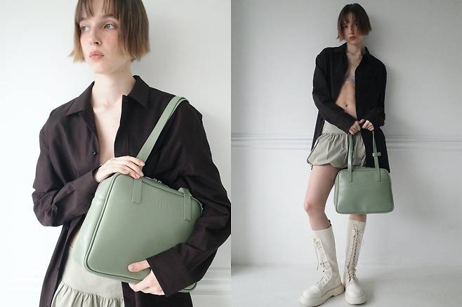 필인더블랭크도 보부상백으로 유명한 브랜드입니다. 원래 가로 사이즈가 40cm인 트라페조 숄더백이 유명한데 너무 크지 않은 적당한 사이즈로 골라봤어요. 가로 사이즈를 줄여서 정사각형에 가까운 형태라 더 귀여운 맛이 있죠? 13인치 노트북과 A4 파일이 딱 맞게 들어갑니다. 컬러는 무조건 필인더블랭크 공식 홈페이지에서만 파는 특별 컬러 민트와 라벤더를 추천드려요. 오묘한 컬러가 아주 매력적입니다. 가격이 10만 원도 채 되지 않는 8만원대라는 것도 합리적이에요.