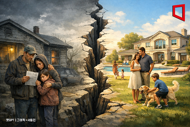저소득층 주택담보대출을 중심으로 연체율이 상승한 영향으로, 미국 내에서 경제 양극화가 심화하고 있음을 보여준다.