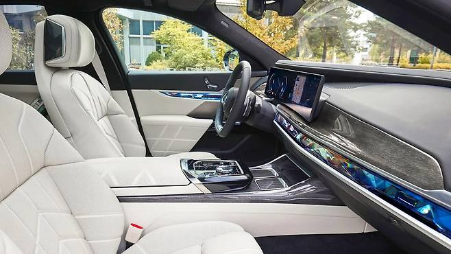 BMW 7시리즈는 전통적인 럭셔리 개념을 ‘소유’에서 ‘경험’으로 확장했다. 핵심은 뒷좌석 천장에서 내려오는 31.3인치 BMW 시어터 스크린이다.