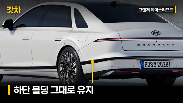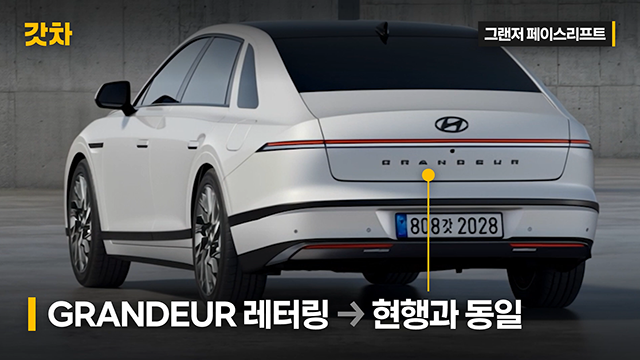 이번 신형 그랜저 페이스리프트에서는 수평형 테일램프는 그대로 유지하면서도, 깜빡이 위치가 양 끝 하단에서 상단으로 이동할 전망입니다. 또한 크롬 또는 블랙 크롬 장식이 추가되며, 후방 카메라 디자인 역시 테두리 없이 깔끔하게 노출될 예정입니다. 번호판 위치는 그대로 유지되지만 주변 레이아웃은 개선된 형태로 변화할 것으로 보입니다.