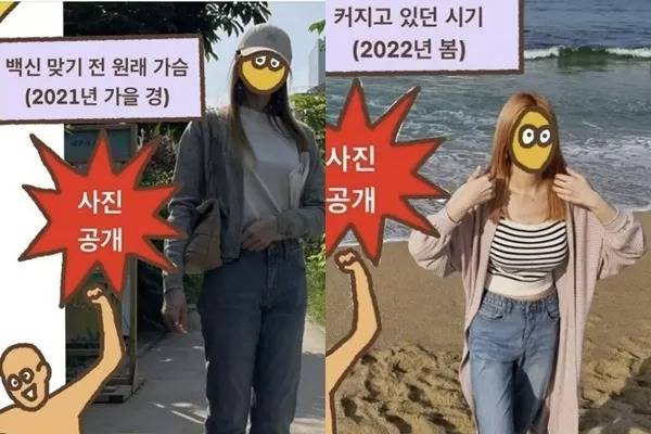 접종 전 A컵이었던 가슴은 B컵으로 커졌고, 3차 접종 후에는 그 크기가 급격히 증가했다고 한다.