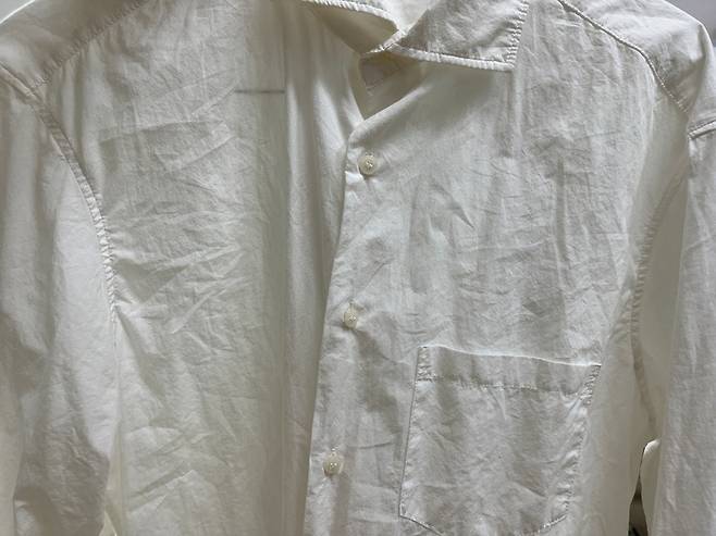 자연스러운 느낌으로 주름이 펴진 게 보이시나요? 여름철 티셔츠 등도 세탁기에 돌려서 말리면 쭈글쭈글한 경우가 많은데요.