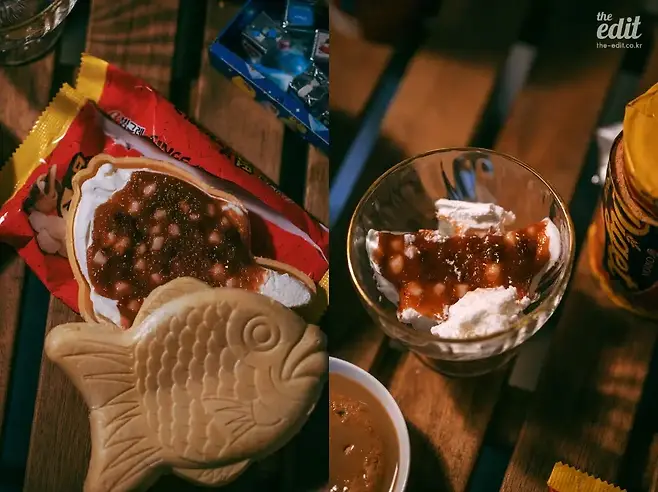 붕어싸만코는 테스트시에만 사용하고 실제로는 달아서 사용하지 않았다고 했으나 붕어싸만코를 넣은 버전도 좋다. 우유생크림빵은 실제 사용된 마롱생크림빵보다 덜 달기 때문에 붕어싸만코를 함께 하면 팥과 아이스크림이 달콤하고 시원한 맛을 더해주어 더더욱 나를 끌어올려 주는 듯한 행복한 기분이 든다.