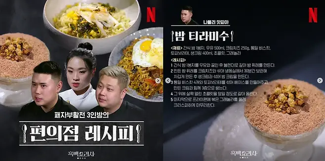 CU에서 단종 되었던 마롱생크림빵도 빠른 시일 내에 재출시 할 예정이란다. 어쩌면 CU에서 나폴리맛피아 셰프의 밤 티라미수를 편의점 제품으로 출시할수도 있고. 얼마 전 넷플릭스는 공식 인스타그램 계정을 통해 오늘 소개한 밤티라미수를 포함 패자부활전에 나왔던 레시피3종을 공개하기도 했다. 정말, 흑백요리사 덕분에 재미있는 콘텐츠가 끊이질 않는 요즘이다. 즐겁다.