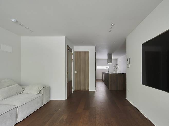 그리고 TV는 완전히 매립해 깔끔함을 살리고 싶었어요. 그래서 가벽을 설치해 TV가 튀어나오지 않고 일직선이 되도록 했습니다.